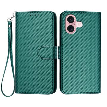 Premium plånboksfodral med rem för iPhone 16 - kolfiberstruktur