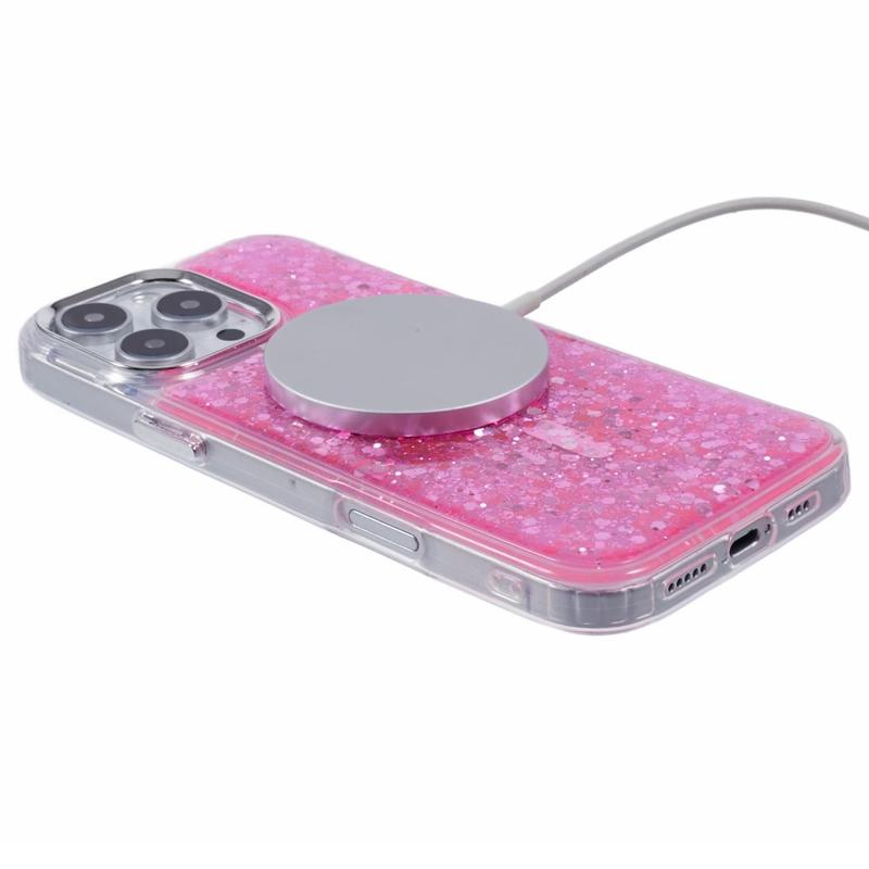 MagSafe-kompatibelt epoxi skal med glittrande paljetter för iPhone 16 Pro Max