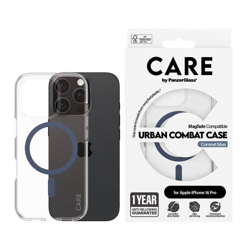 Care by PanzerGlass Transparent Urban Combat Skal för iPhone 16 Pro - MagSafe-kompatibelt