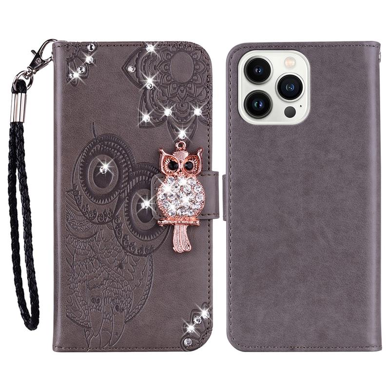 - Plånboksfodral med uggla och strass för iPhone 16 Pro