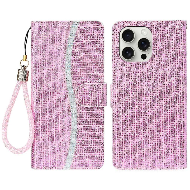 Snyggt plånboksfodral med glitter för iPhone 16 Pro Max
