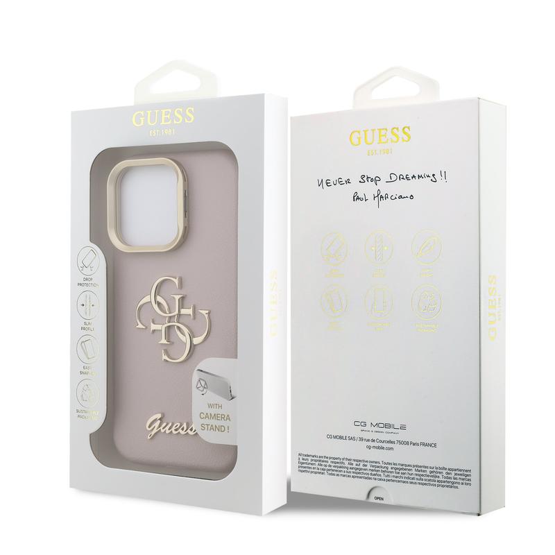 iPhone 16 Pro Max Guess Grained 4G Logo Stativkameraramskal - Rosa