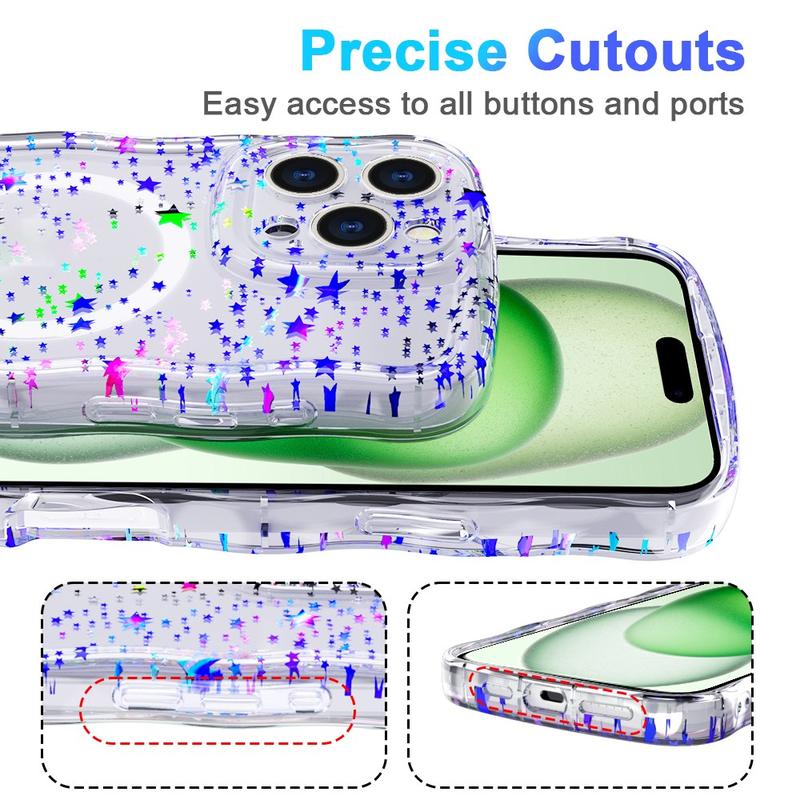 iPhone 16 Pro Max Wave-Edge Laser Glitter MagSafe-Skal - Stjärna