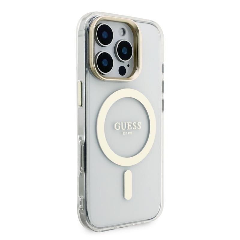 Guess Electroplated Stand Camera Frame MagSafe-fodral med utbytbara bakgrunder för iPhone 16 Pro - Swap-Style Lyx och Vardagsskydd