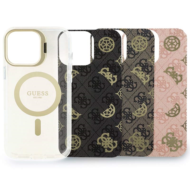 Guess Elektropläterad Stativkameraram MagSafe-Skal med Utbytbara Bakgrunder för iPhone 16 Pro Max - Swap-Style Lyx och Vardagsskydd