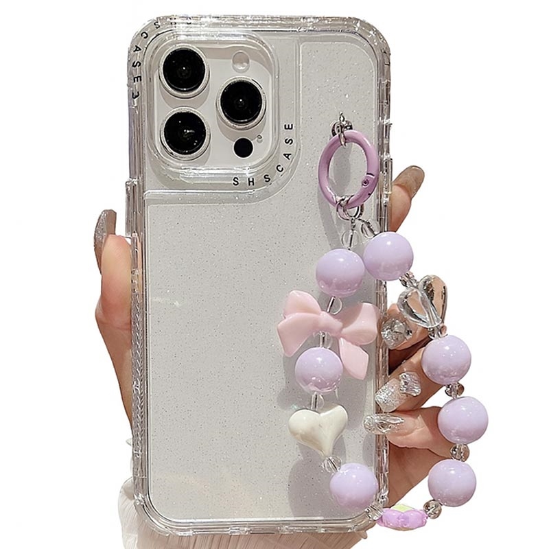 Glittrande, stötsäkert hybridskal med handledsrem för iPhone 16 Pro Max - PC + TPU-skyddsfodral