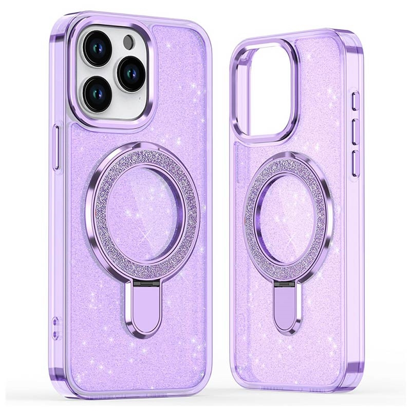 Glitterskal med kickstand för iPhone 16 Pro Max - MagSafe-kompatibelt TPU + PC Hybrid Kickstand-skal