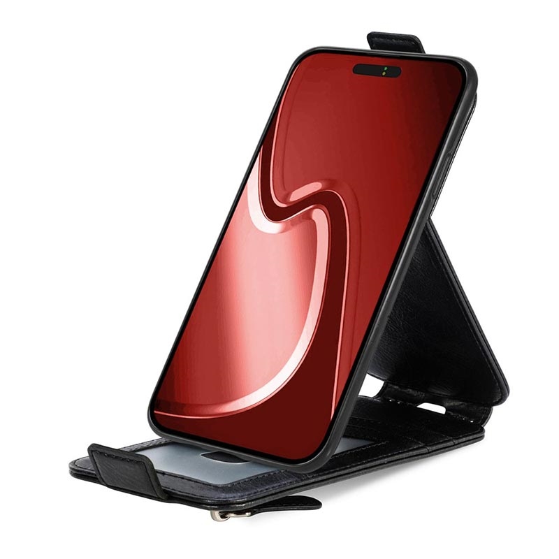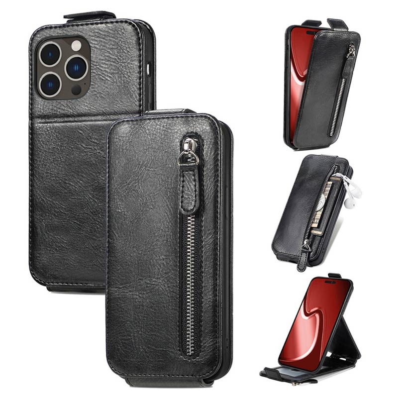 - Elegant vertikalt flipfodral med blixtlåsficka till iPhone 16 Pro