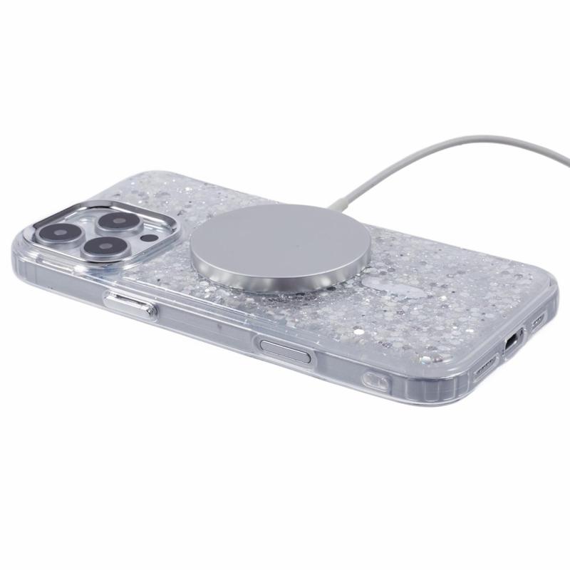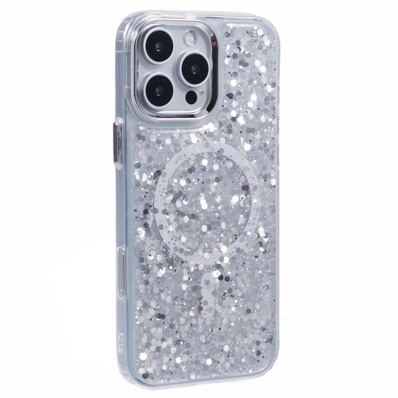 MagSafe-kompatibelt epoxi skal med glittrande paljetter för iPhone 16 Pro