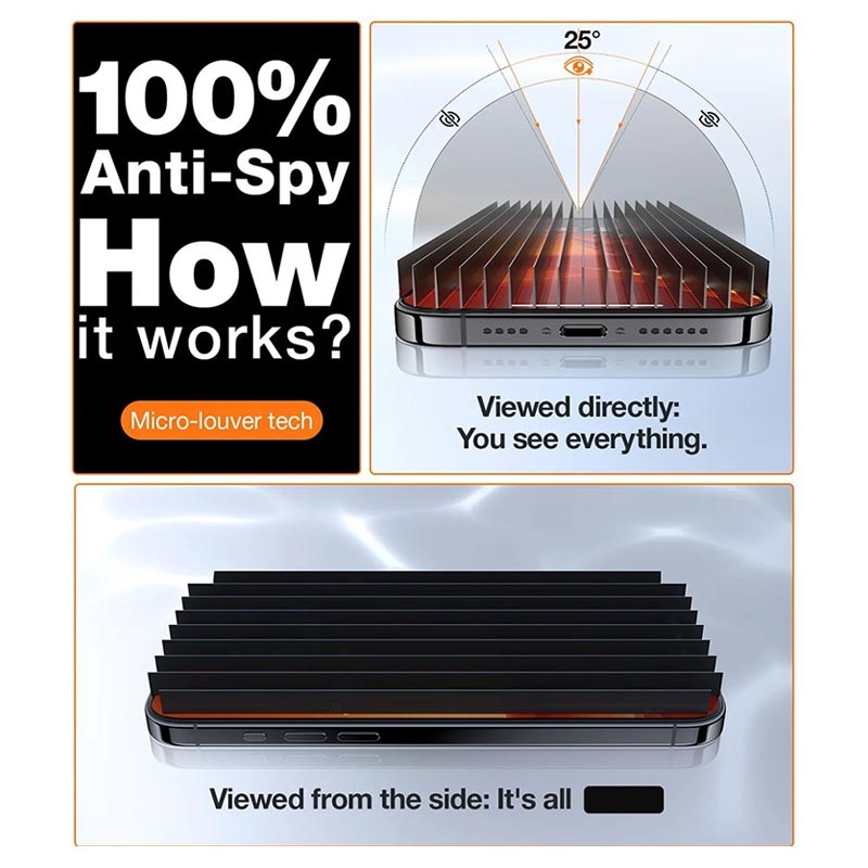 - Förbättrad integritet: Antispionteknik säkerställer att ditt skärminnehåll förblir privat, vilket gör det idealiskt för offentlig användning eller professionella miljöer.