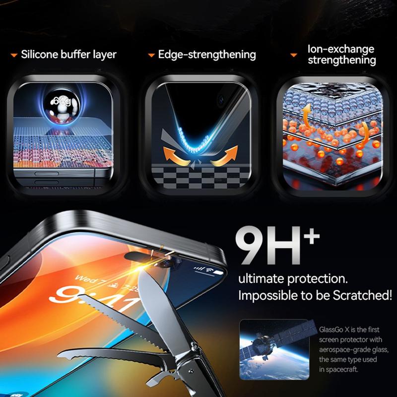 - Högupplöst klarhet: Det härdade glaset säkerställer att din iPhone 16 Pro-skärm förblir kristallklar, vilket bevarar skärpan och ljusstyrkan på din skärm.