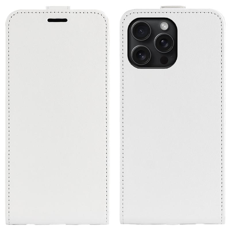 - Elegant vertikalt flipfodral som är särskilt designad för iPhone 16 Pro