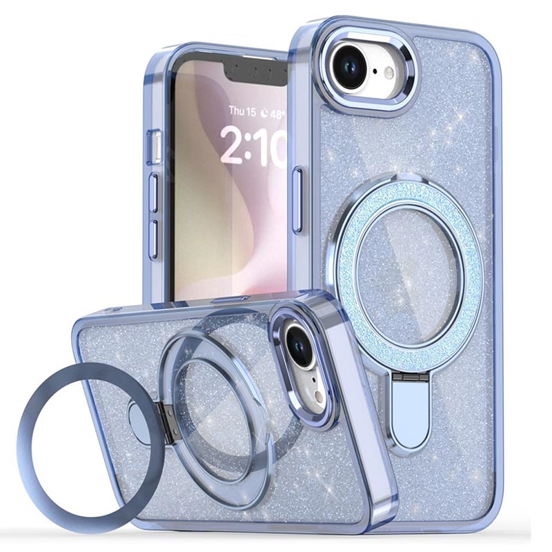 Glitterskal med kickstand för iPhone 16e - MagSafe-kompatibelt TPU + PC Hybrid Kickstand-skal