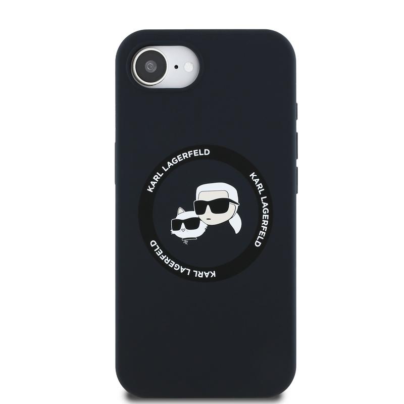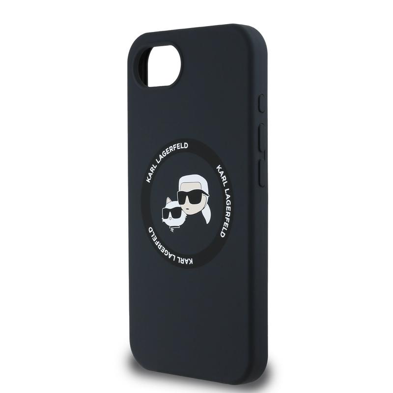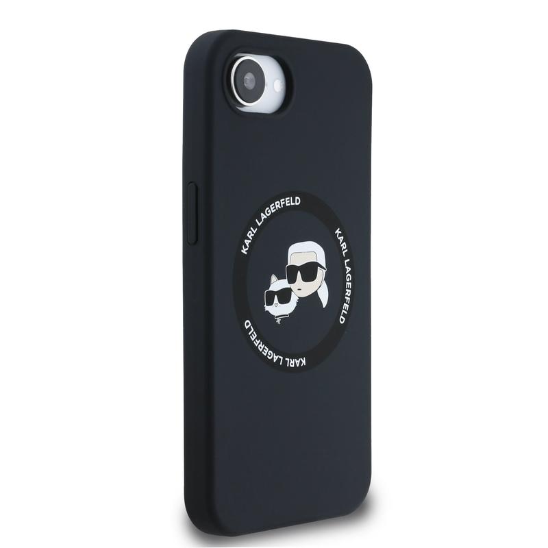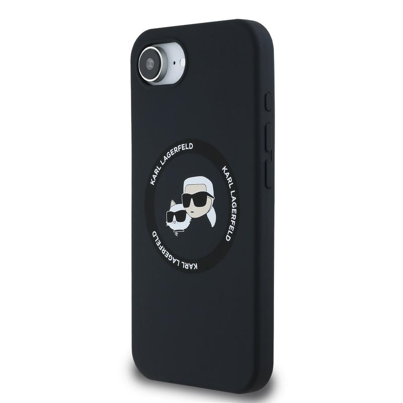 iPhone 16e Karl Lagerfeld Karl and Choupette MagSafe-fodral i flytande silikon - Svart