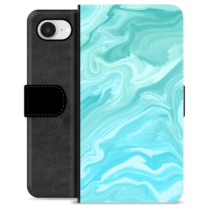 iPhone 16e Premium Plånboksfodral - Blå Marmor