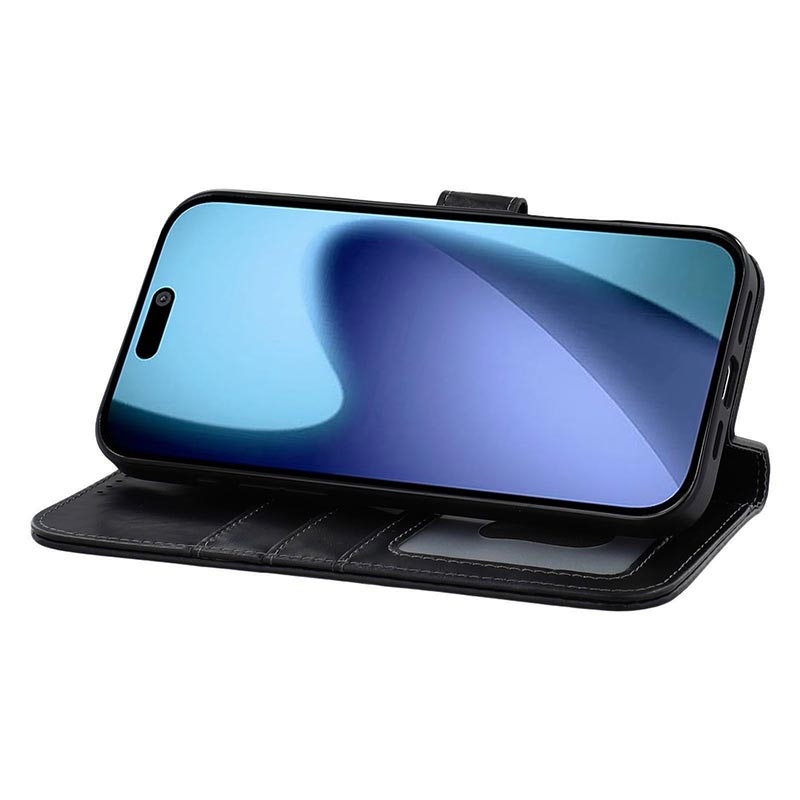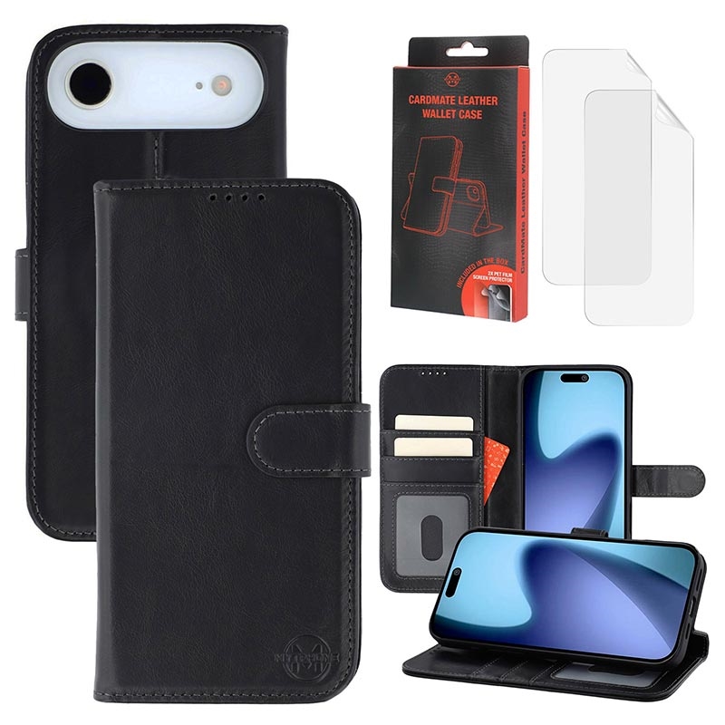 MyTPhone CardMate Premium läder plånboksfodral för iPhone Air - Stativ funktion, korthållare, stöd för trådlös laddning, 2x skärmskydd