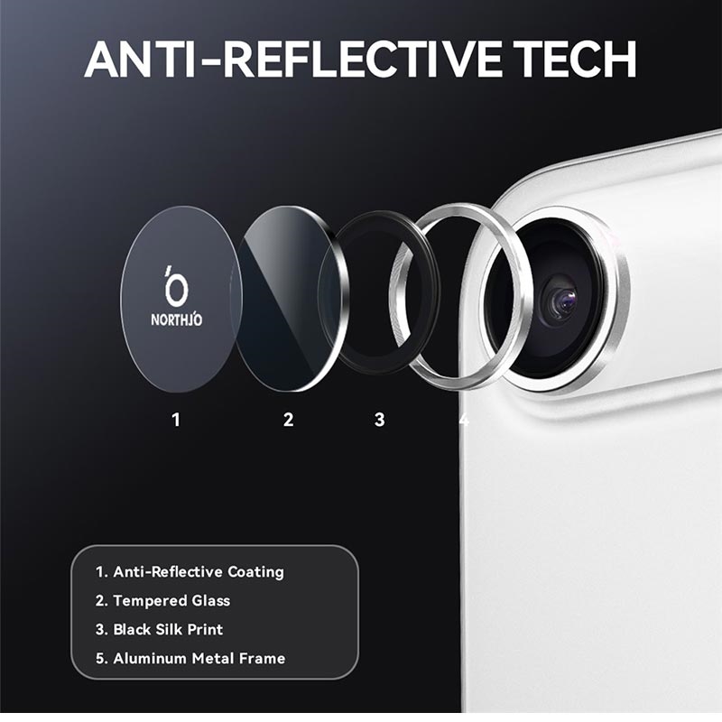 Uppgradera din iPhone Air med Northjo kameralinsskydd. Med en aluminiumring med CD-ådror ger det en elegant, modern touch till din iPhone Air samtidigt som det erbjuder ett robust skydd. Det 9H härdade glaset skyddar mot repor, stötar och damm och ser till att kameralinsen förblir kristallklar. Med enkel, verktygsfri installation kan du förbättra hållbarheten och estetiken hos din iPhone Air på några sekunder.