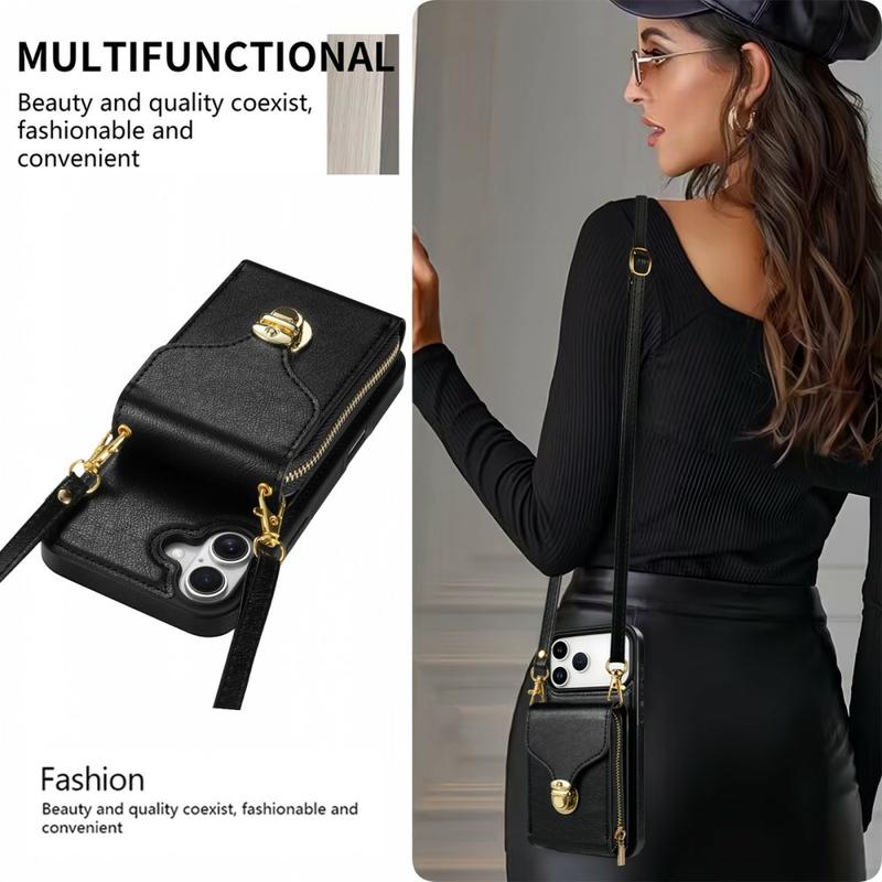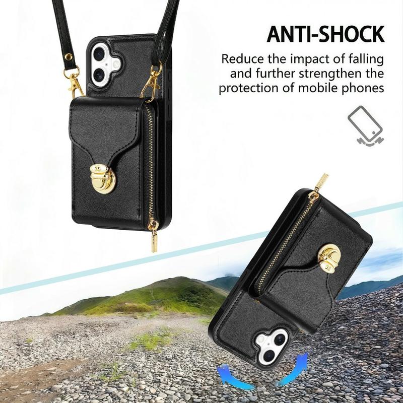 Allt-i-ett skyddande TPU-skal med plånbok och rem för iPhone 17