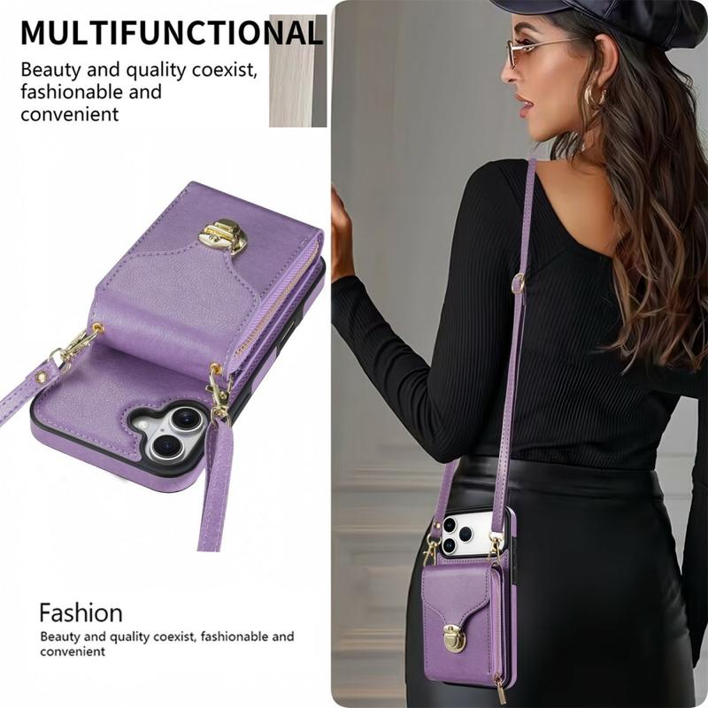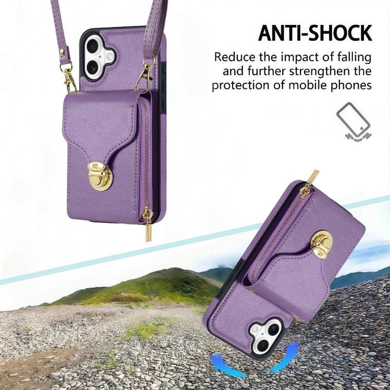 Allt-i-ett skyddande TPU-skal med plånbok och rem för iPhone 17