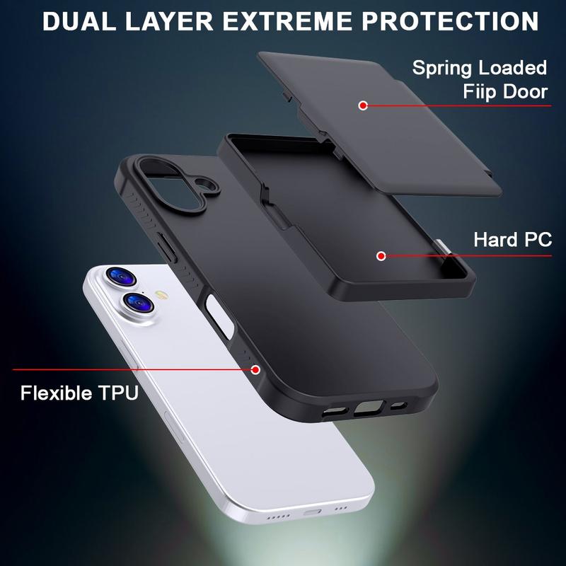 Hybridskal för iPhone 17 med Gömd Spegel & Kortplats