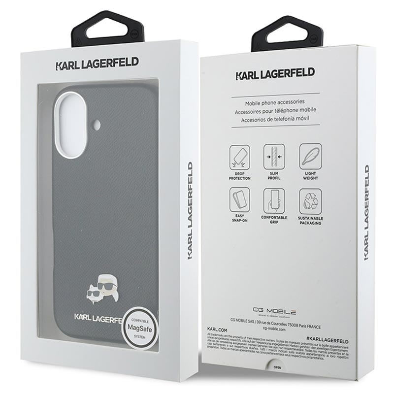 MagSafe-fodralet ”Karl Lagerfeld Karl and Choupette Heads Pins” för iPhone 17 kombinerar vardagligt skydd med en exklusiv, modeinspirerad design. Denna modell är skapad för användare som vill att deras mobilskal ska vara lika stilfullt som resten av deras accessoarer, och förenar elegans, praktisk funktion och varumärkesidentitet i en raffinerad helhet. Den ikoniska designen med Karl Lagerfeld och Choupette på baksidan ger en igenkännbar och lyxig touch samtidigt som det övergripande utseendet förblir modernt och användarvänligt.