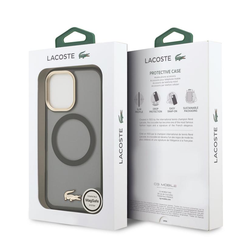 Lacoste Frosted Finish Gold Logo Hybridskal för iPhone 17 - MagSafe-kompatibelt, premiumbaksida med guldlogotyp och kameraram