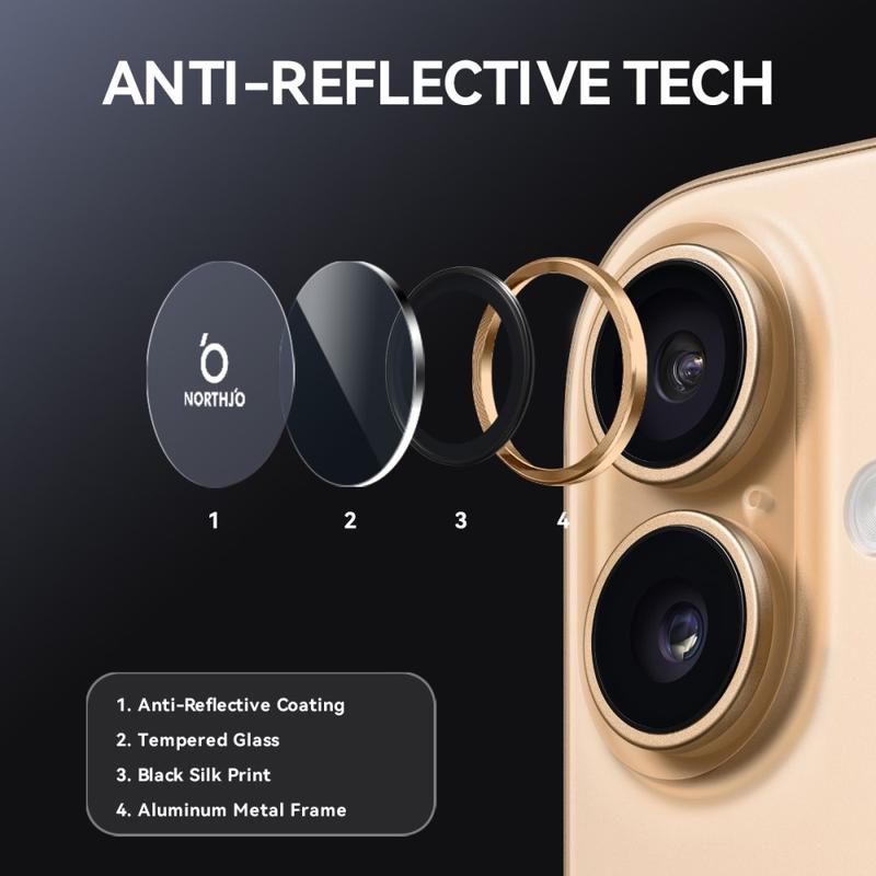 Uppgradera din iPhone 17 med Northjo kameralinsskydd. Med en aluminiumring med CD-ådror ger det en elegant, modern touch till din iPhone 17 samtidigt som det erbjuder ett robust skydd. Det 9H härdade glaset skyddar mot repor, stötar och damm och ser till att kameralinsen förblir kristallklar. Med enkel, verktygsfri installation kan du förbättra hållbarheten och estetiken hos din iPhone 17 på några sekunder.