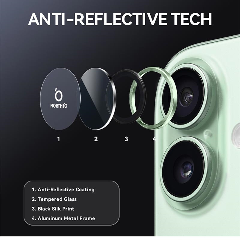 Uppgradera din iPhone 17 med Northjo kameralinsskydd. Med en aluminiumring med CD-ådror ger det en elegant, modern touch till din iPhone 17 samtidigt som det erbjuder ett robust skydd. Det 9H härdade glaset skyddar mot repor, stötar och damm och ser till att kameralinsen förblir kristallklar. Med enkel, verktygsfri installation kan du förbättra hållbarheten och estetiken hos din iPhone 17 på några sekunder.