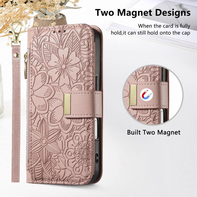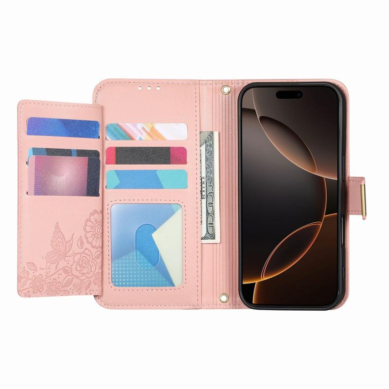 Till skillnad från vanliga iPhone 17-fodral kombinerar detta allt-i-ett plånboksfodral skydd, organisation och elegans. Det blommiga trycket ger det en elegant kant, medan blixtlåsfickan och handledsremmen ger oöverträffad bekvämlighet för det dagliga livet och resor.