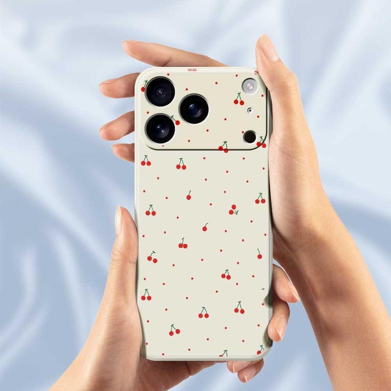 TPU-skal med körsbärsmönster för iPhone 17 Pro - mjuk textur i flytande silikon med upphöjt kameraskydd