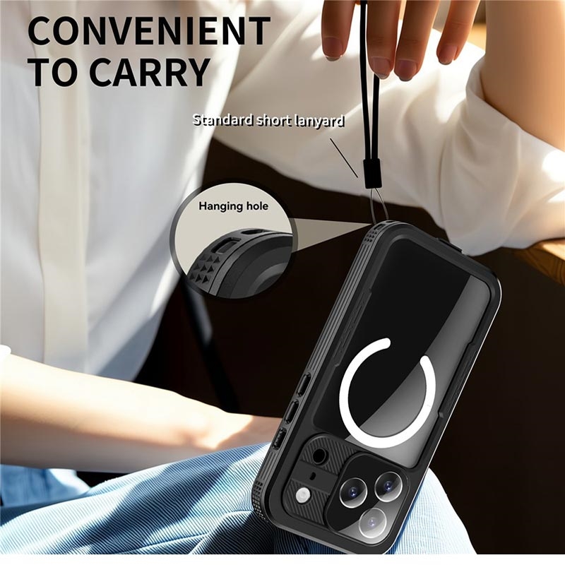 Shellbox M Series vattentäta fodral kombinerar robust skydd med modern bekvämlighet. Dess IP68-klassning och MagSafe-kompatibilitet gör det till ett mångsidigt tillbehör för dem som kräver hållbarhet utan att offra funktionalitet. Oavsett om du är en ivrig dykare eller någon som söker omfattande skydd för din iPhone 17 Pro, erbjuder detta fodral sinnesfrid i alla miljöer.