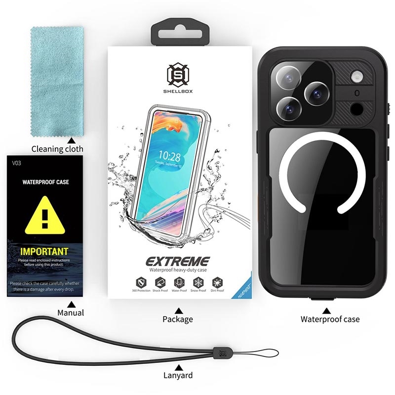 Utrusta din iPhone 17 Pro med Shellbox M Series Waterproof Case och ta dig an ditt nästa äventyr med tillförsikt, eftersom du vet att din enhet är skyddad och redo för action.