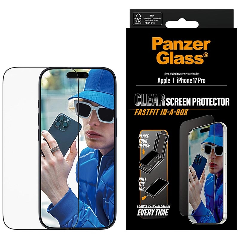 PanzerGlass Ultrabred passform m. FastFit In-A-Box skärmskydd av härdat glas för iPhone 17 Pro
