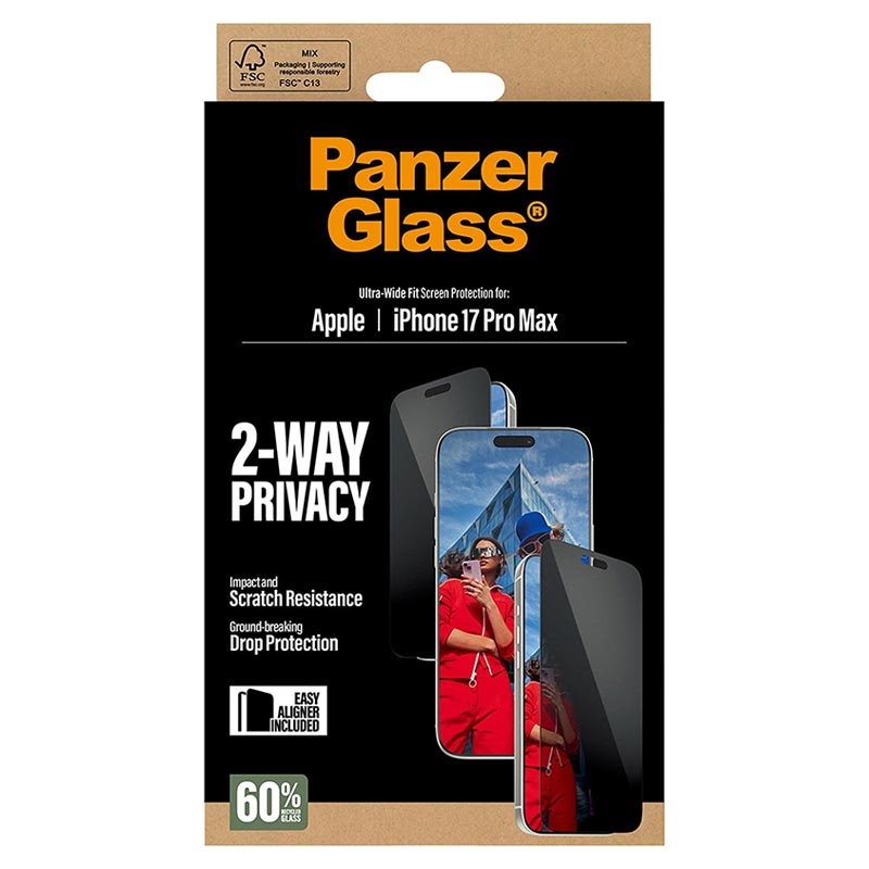 PanzerGlass Ultra-Wide Fit EasyAligner 2-Way Privatliv Skärmskydd av härdat glas för iPhone 17 Pro Max