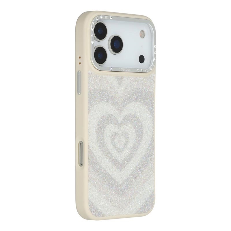 Jaucase Magnetiskt hybridskal med hjärtmönster för iPhone 17 Pro Max - polyuretan + TPU + PC med linsram av strass