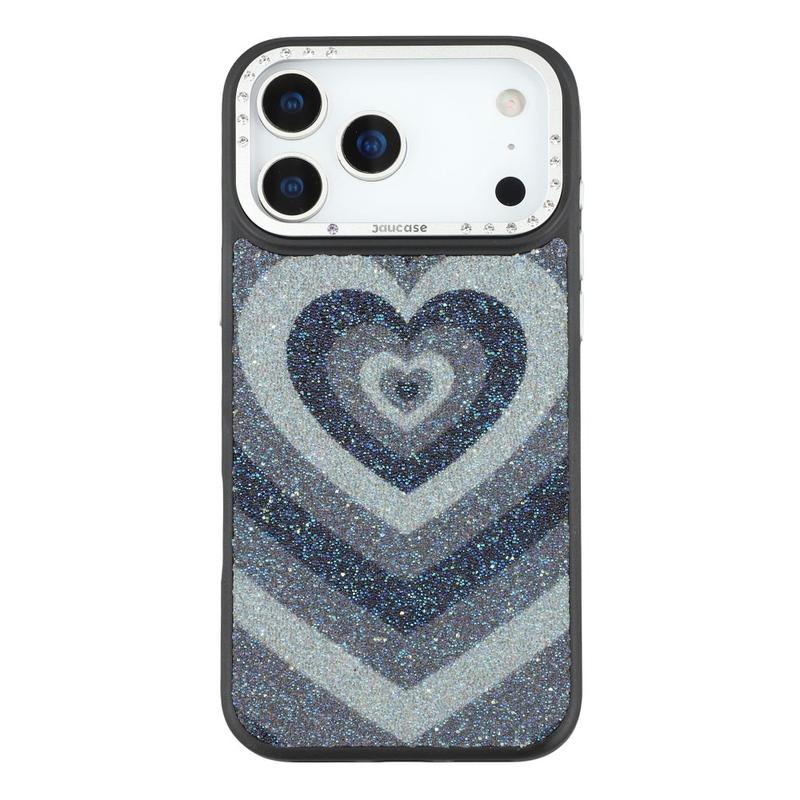 Jaucase Magnetiskt hybridskal med hjärtmönster för iPhone 17 Pro Max - polyuretan + TPU + PC med linsram av strass