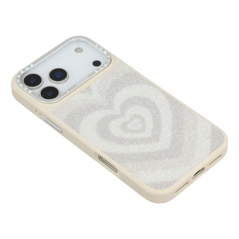 Jaucase Magnetiskt hybridskal med hjärtmönster för iPhone 17 Pro - polyuretan + TPU + PC med linsram av strass