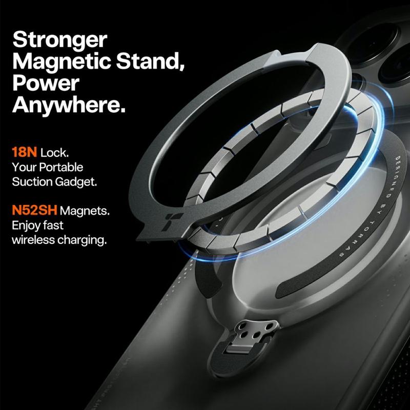 Torras Ostand Q3 Air MagSafe skal för iPhone 17 Pro Max - 360 kickstand, AirMAX krockkuddeskydd, starkt magnetiskt grepp