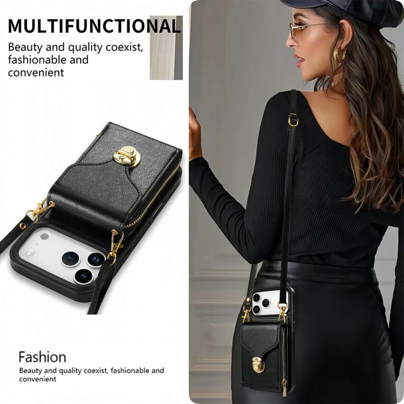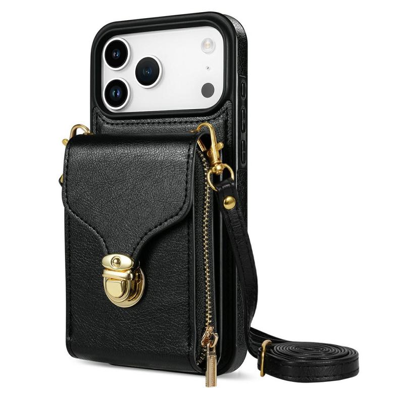 Allt-i-ett skyddande TPU-skal med plånbok och rem för iPhone 17 Pro Max