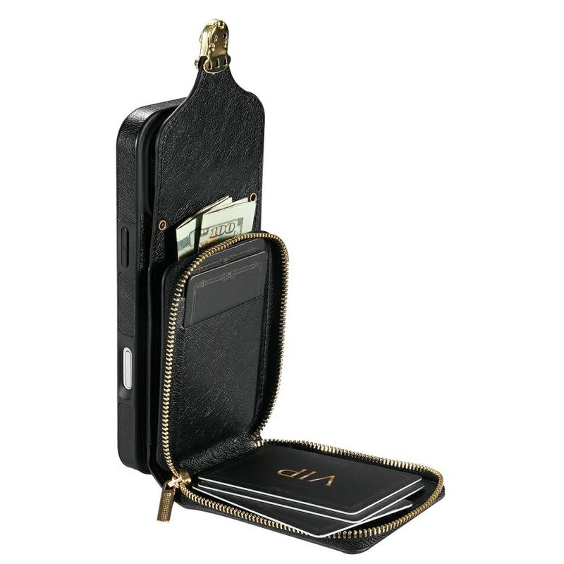 Bär med dig din telefon, dina kort och kontanter i en elegant accessoar med detta blixtlåsförsedda plånboksfodral för iPhone 17 Pro Max. Tillverkat av slitstark TPU med överdrag av premium polyuretanläder, ger det skydd i vardagen samtidigt som det ersätter behovet av en separat plånbok. Perfekt för dig som vill ha stil, bekvämlighet och säkerhet i ett.