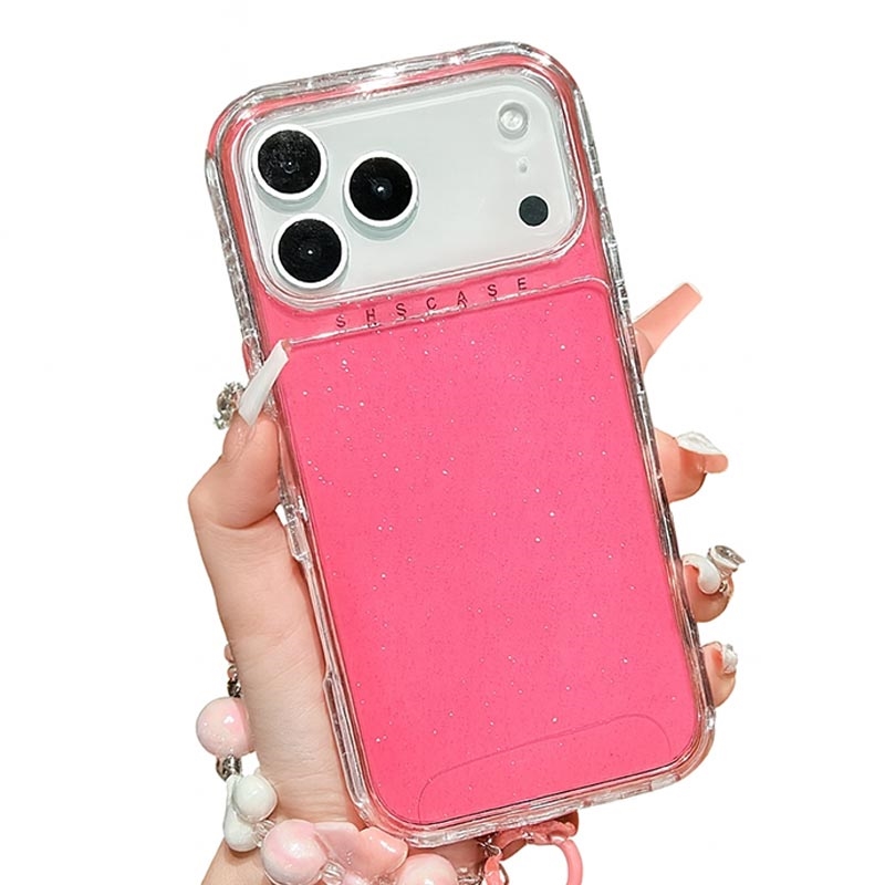 Glittrande, stötsäkert hybridskal med handledsrem för iPhone 17 Pro Max - PC + TPU-skyddsfodral