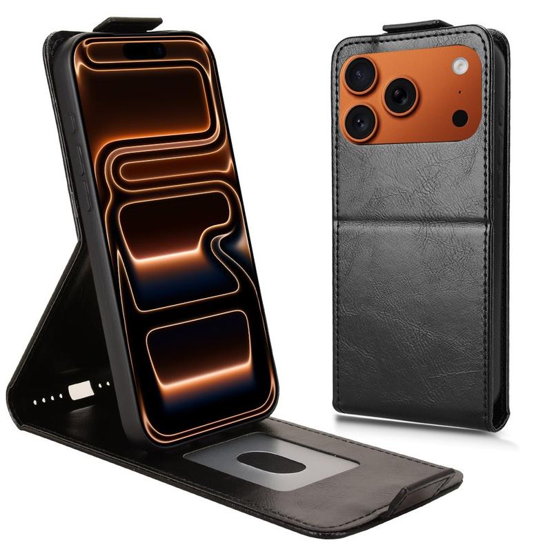 Vertikalt flipfodral för iPhone 17 Pro Max - magnetisk stängning, stativfunktion, korthållare