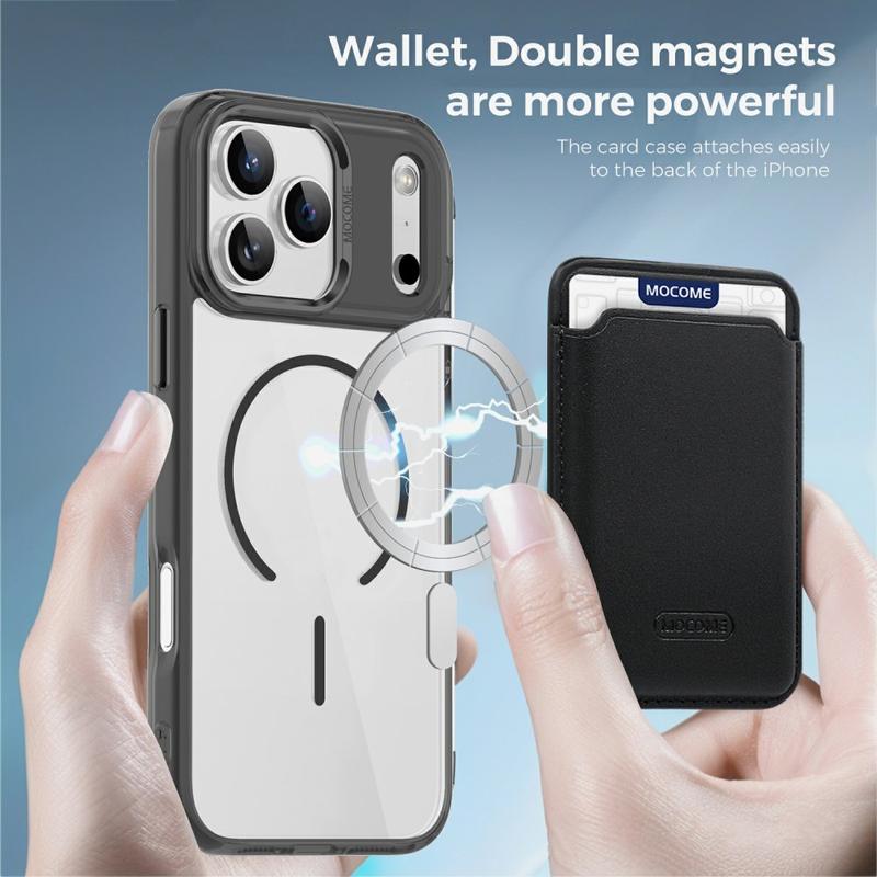 Detta iPhone 17 Pro Max-fodral ger 360° skydd och modern bekvämlighet. Den löstagbara magnetiska korthållaren gör det idealiskt för dem som föredrar att resa lätt, medan MagSafe-kompatibilitet säkerställer enkel trådlös laddning. Den tunna, kristallklara designen innebär att du kan visa upp din iPhone 17 Pro Max samtidigt som den är skyddad.