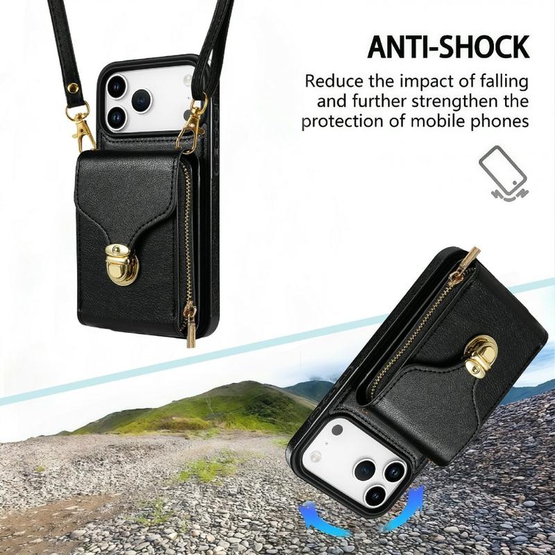 Allt-i-ett skyddande TPU-skal med plånbok och rem för iPhone 17 Pro
