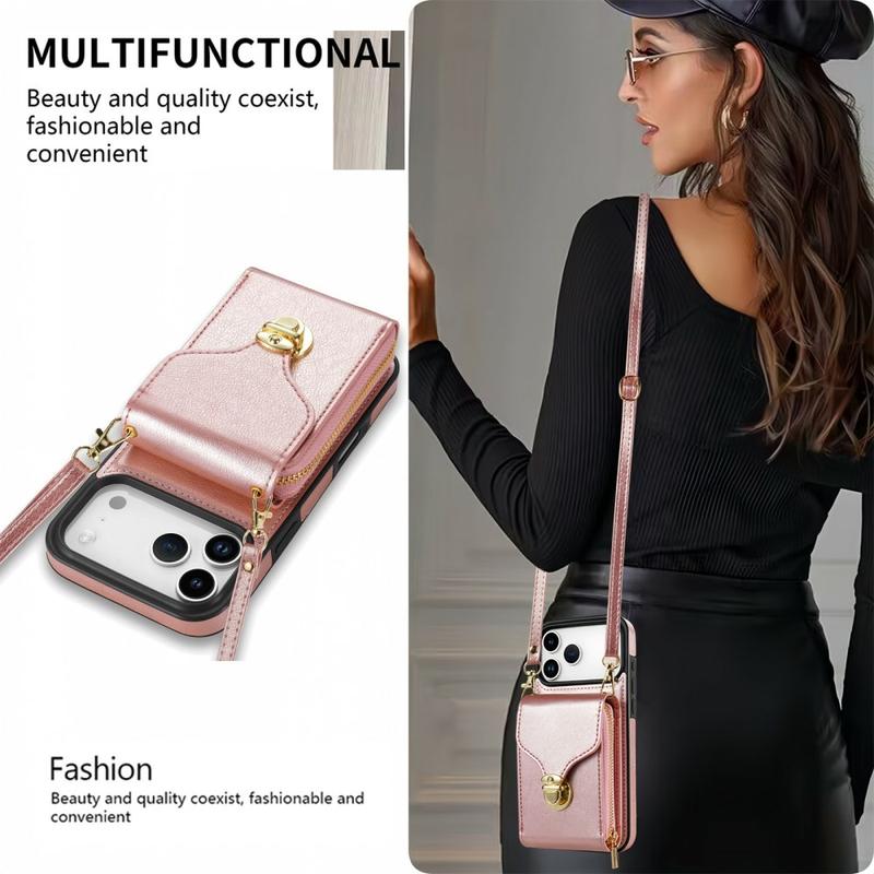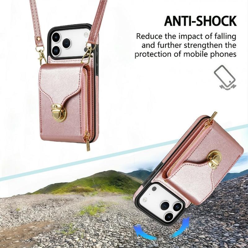 Allt-i-ett skyddande TPU-fodral med plånbok och rem för iPhone 17 Pro