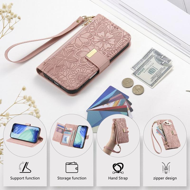 Till skillnad från vanliga iPhone 17 Pro-fodral kombinerar detta allt-i-ett plånboksfodral skydd, organisation och elegans. Det blommiga trycket ger det en elegant kant, medan blixtlåsfickan och handledsremmen ger oöverträffad bekvämlighet för det dagliga livet och resor.