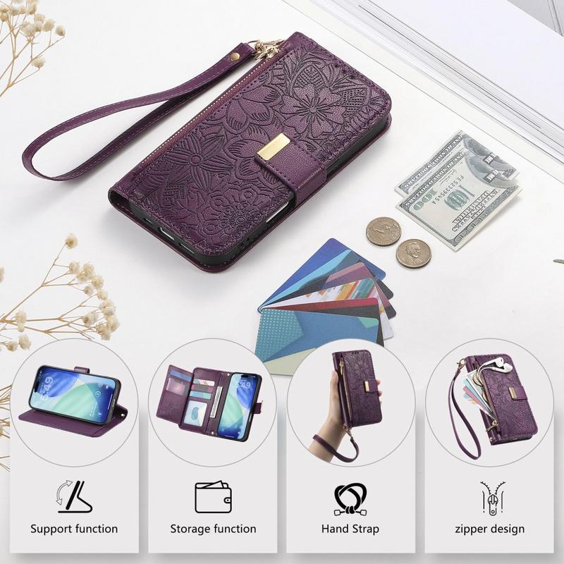 Till skillnad från vanliga iPhone 17 Pro-fodral kombinerar detta allt-i-ett plånboksfodral skydd, organisation och elegans. Det blommiga trycket ger det en elegant kant, medan blixtlåsfickan och handledsremmen ger oöverträffad bekvämlighet för det dagliga livet och resor.