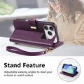 Plånboksfodral i mönster av blommor och blad med blixtlåsficka och handledsrem för iPhone 17 Pro Max