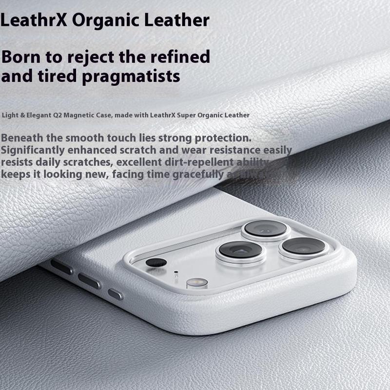 Skydda din telefon i premiumstil med BENKS Q2 MagSafe-fodralet för iPhone 17 Pro Max. Fodralet är tillverkat av mikrofiberläder på utsidan, en styv PC-ram och en mjuk silikoninredning och ger en lyxig känsla samtidigt som det ger ett heltäckande skydd. Den innovativa N52-magnetmatrisen med sällsynta jordartsmetaller förbättrar MagSafe-kompatibiliteten och säkerställer en stark och pålitlig anslutning för laddare och tillbehör. Fodralet är utformat för att motstå fingeravtryck och svett och förblir rent och elegant vid daglig användning. Med sin smala profil, exakta passform och förbättrade greppstruktur balanserar BENKS Q2 perfekt sofistikering, komfort och hållbarhet.