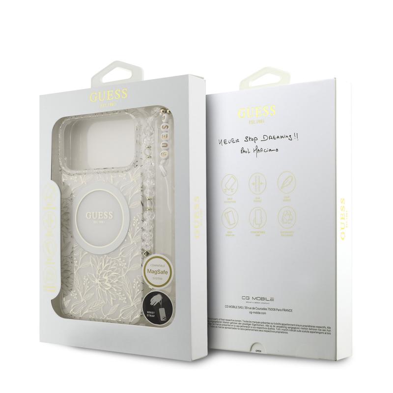 Guess IML Flowers Allover Electro skal med pärlband för iPhone 17 Pro Max - MagSafe-kompatibel